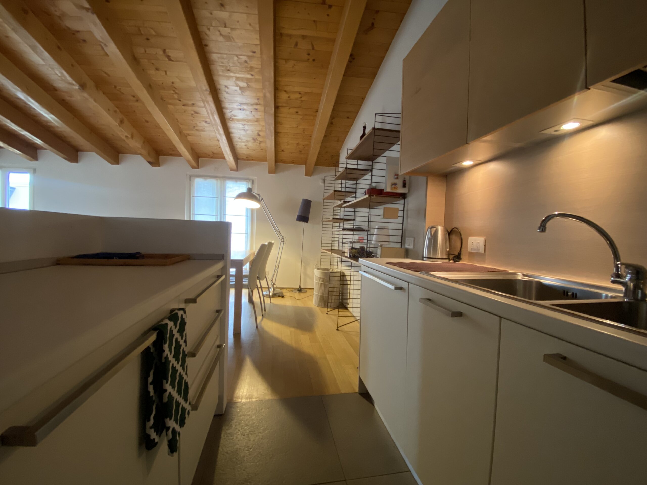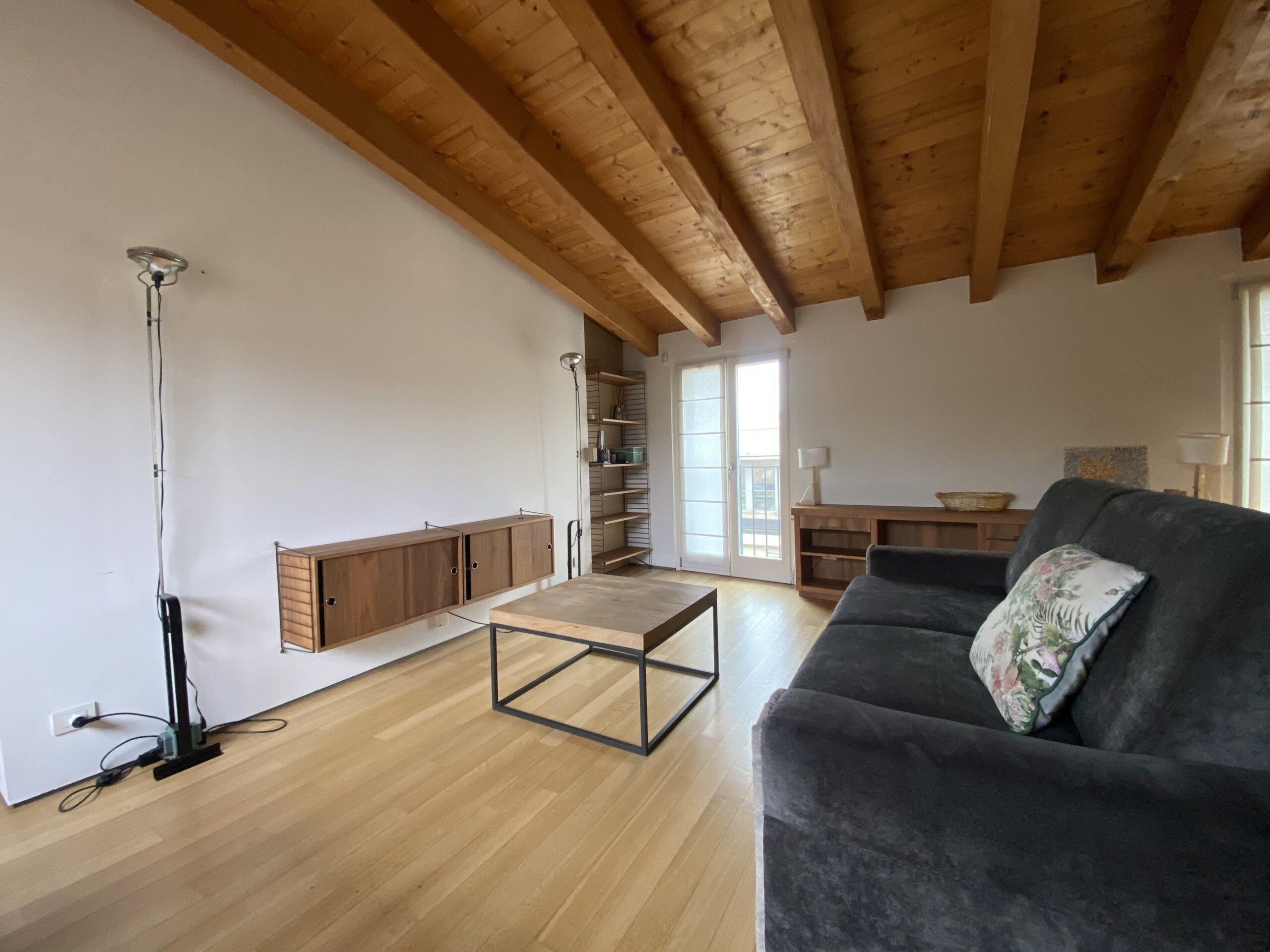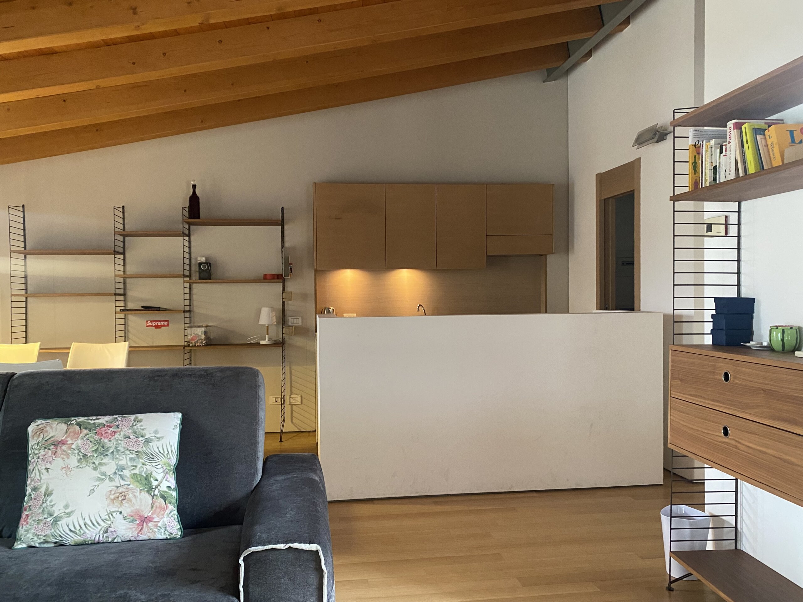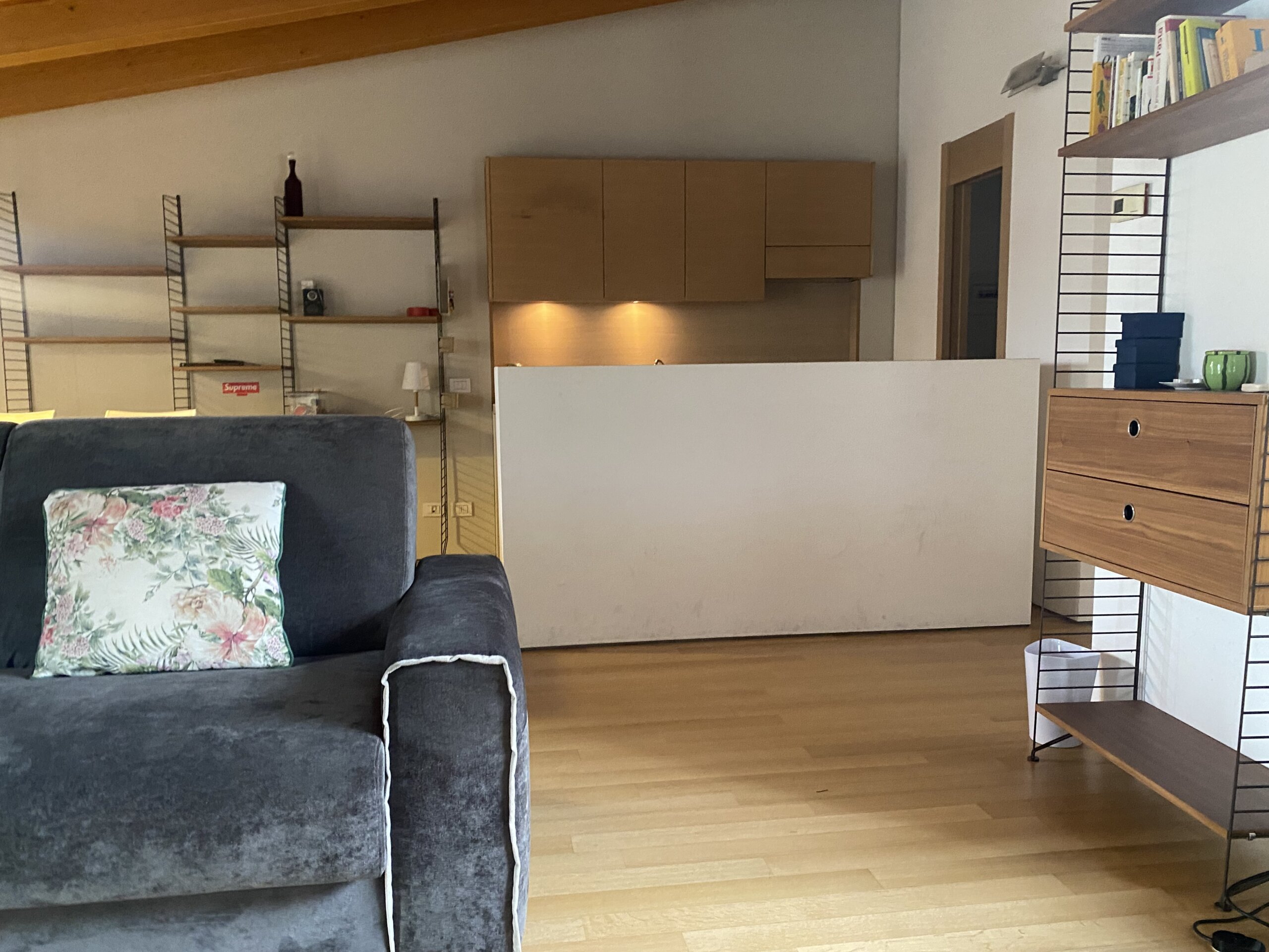The apartment of about 60 sqm is located on the 6th floor with an elevator that goes up to the 5th floor + a small flight of stairs. It consists of a large living room with a fully equipped open kitchen, two bathrooms, one with a shower and the other for guests, and a double bedroom with large closets.