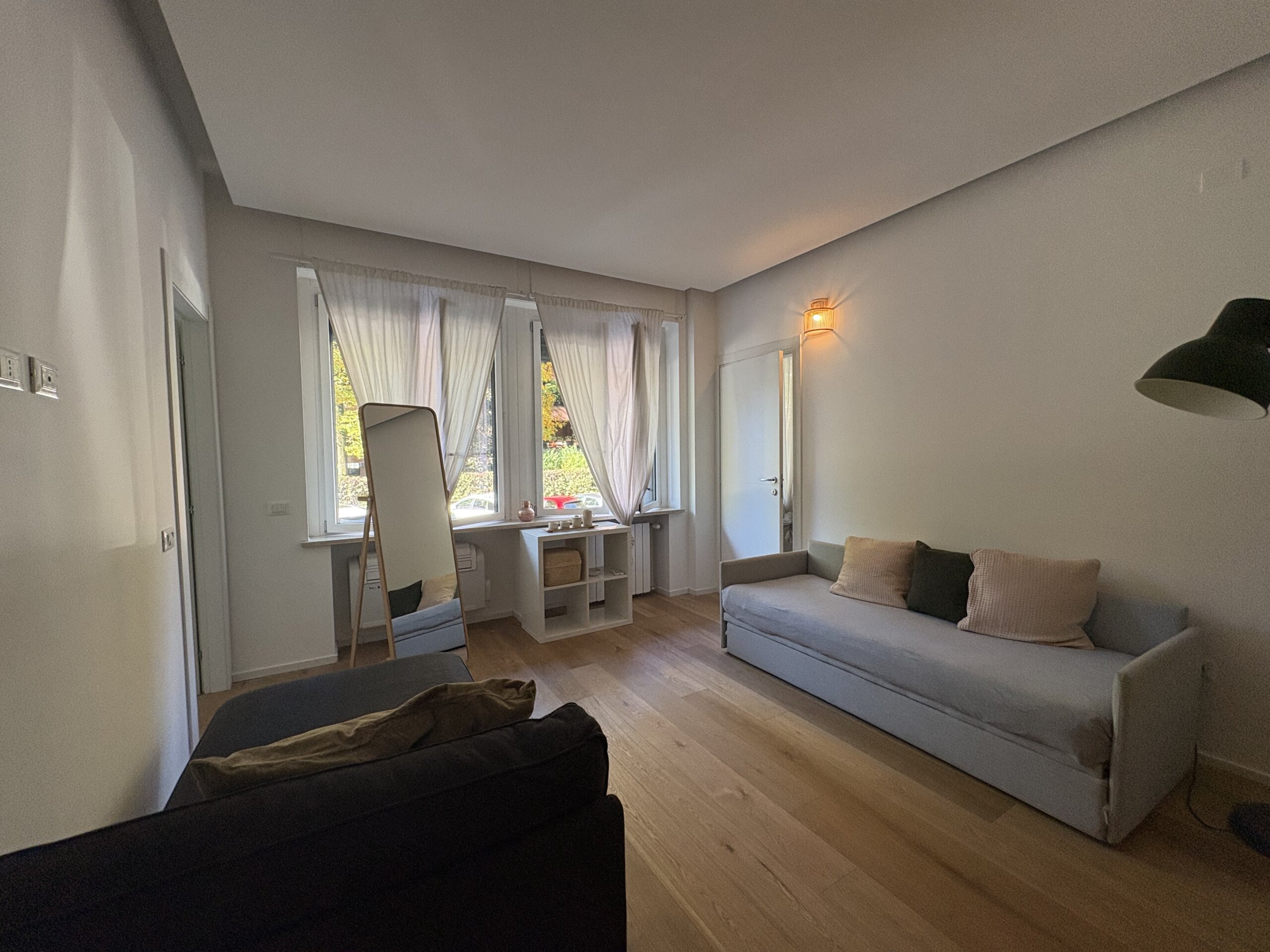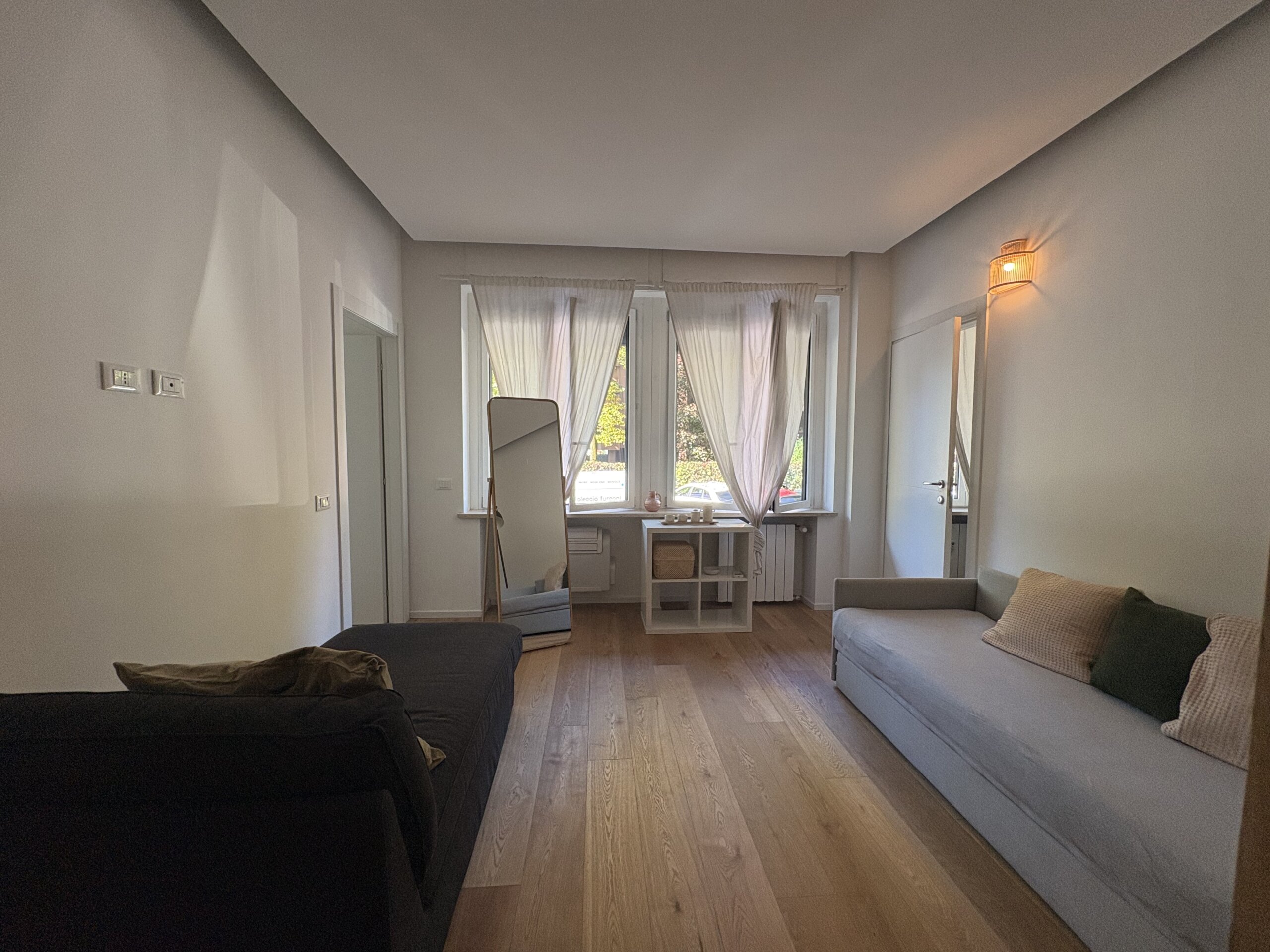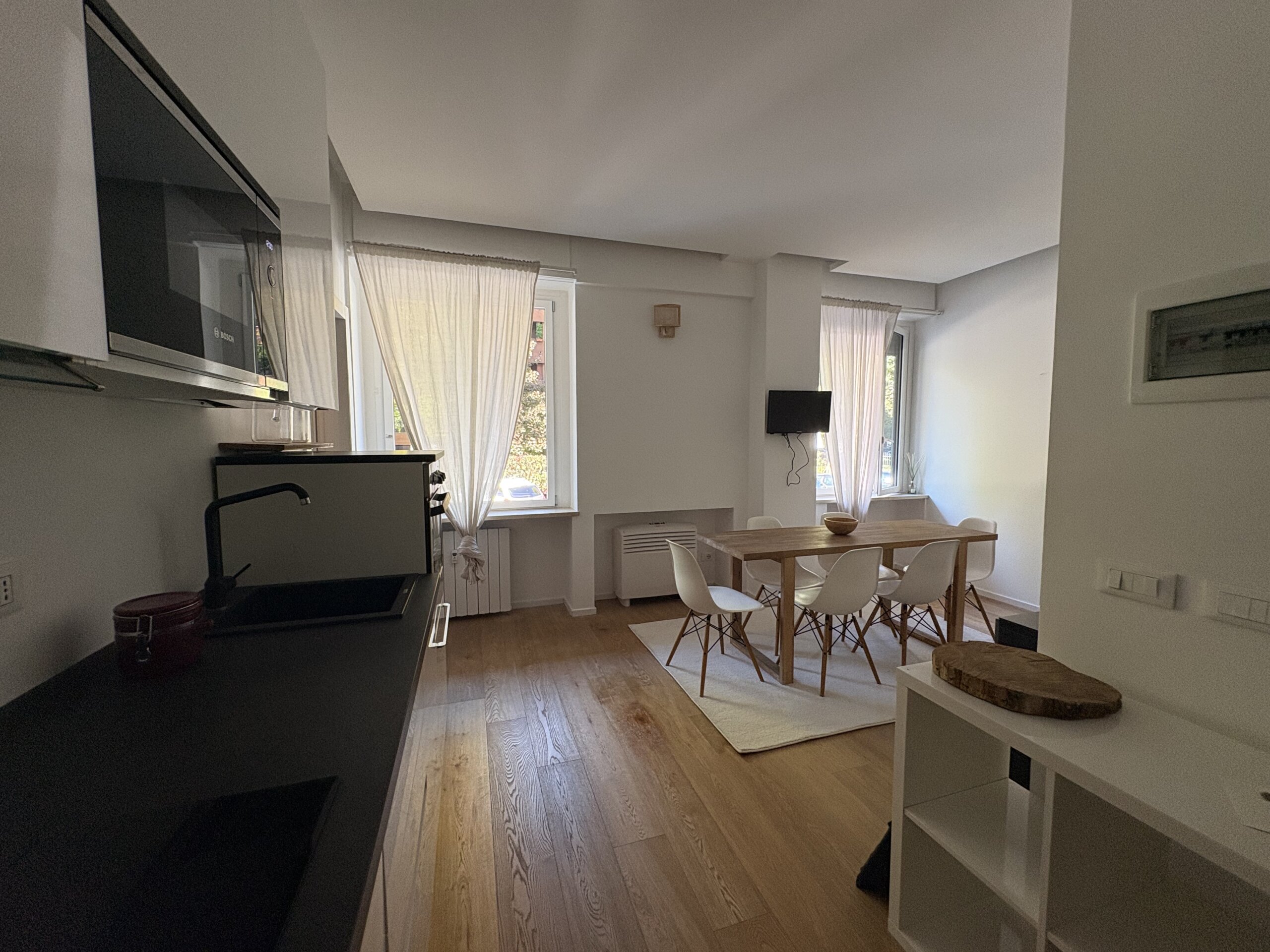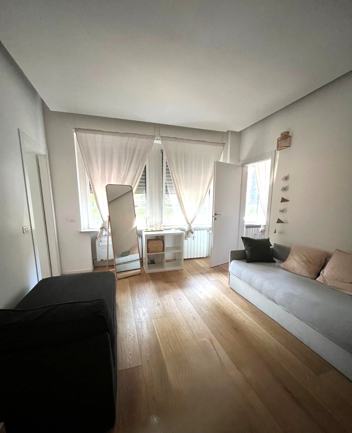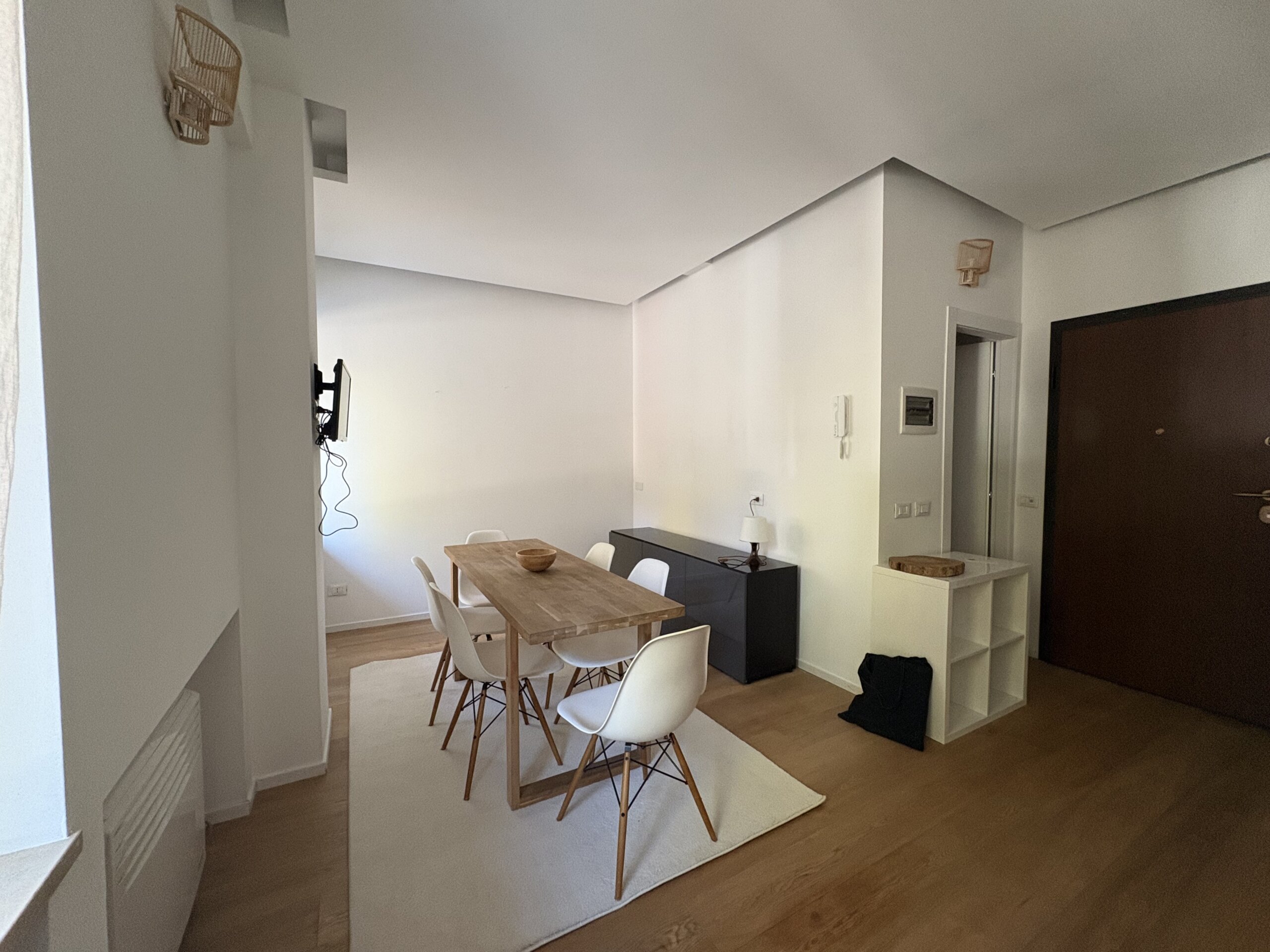 Bright and spacious newly renovated two-room flat located in the Porta Romana area. With a commercial area of 60 m², the flat on the mezzanine floor offers a welcoming environment. The flat consists of a double bedroom, a living room that can be converted into a second bedroom with a double sofa bed, a large open-plan kitchen area with a large dining table, ideal for dinners with friends and smart working, and two bathrooms with showers.