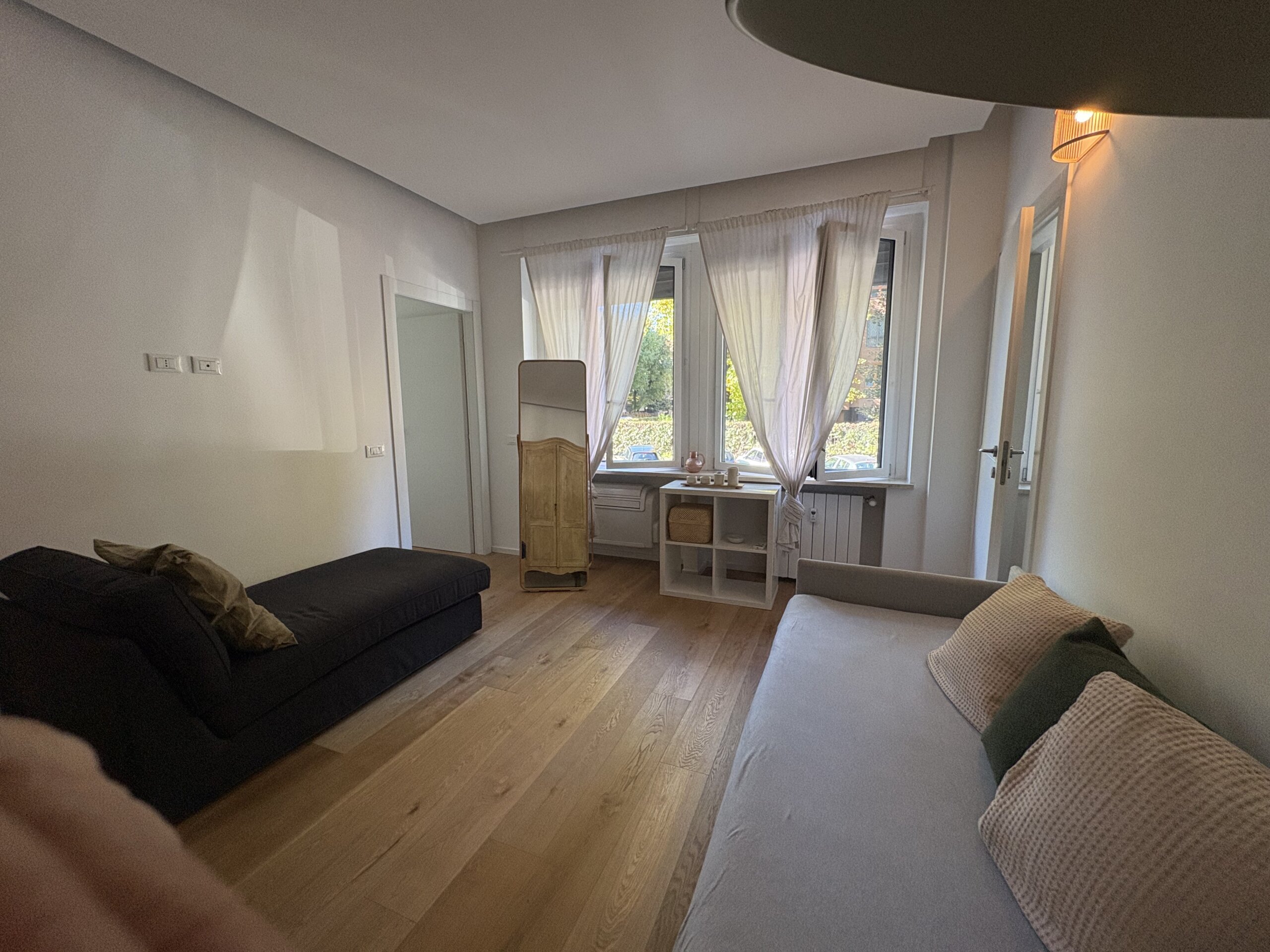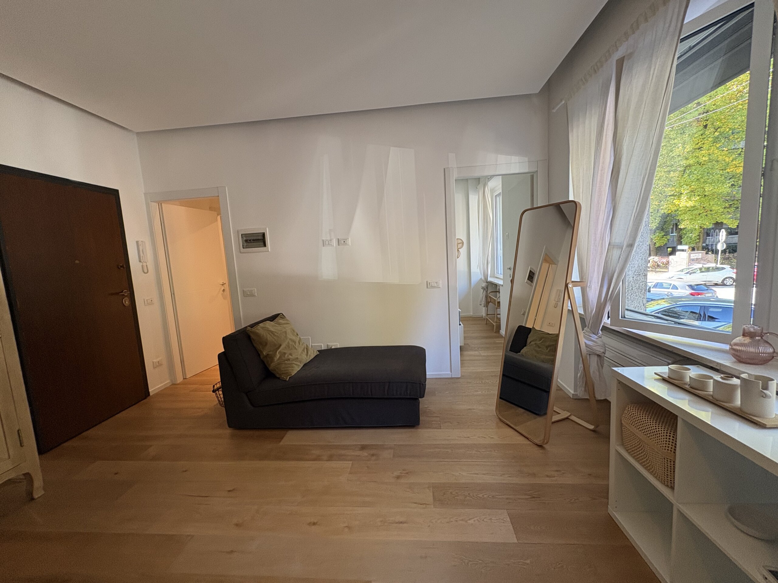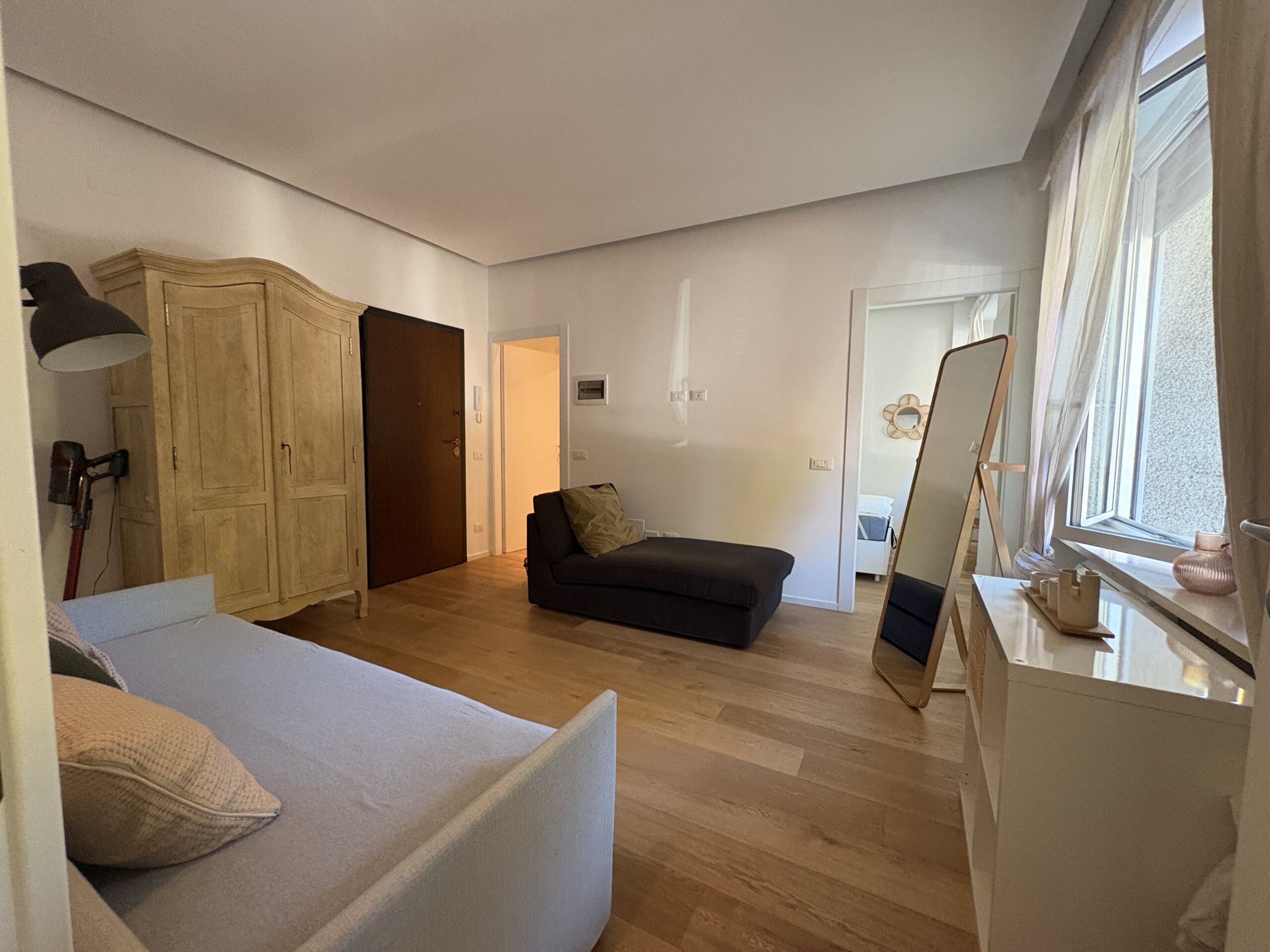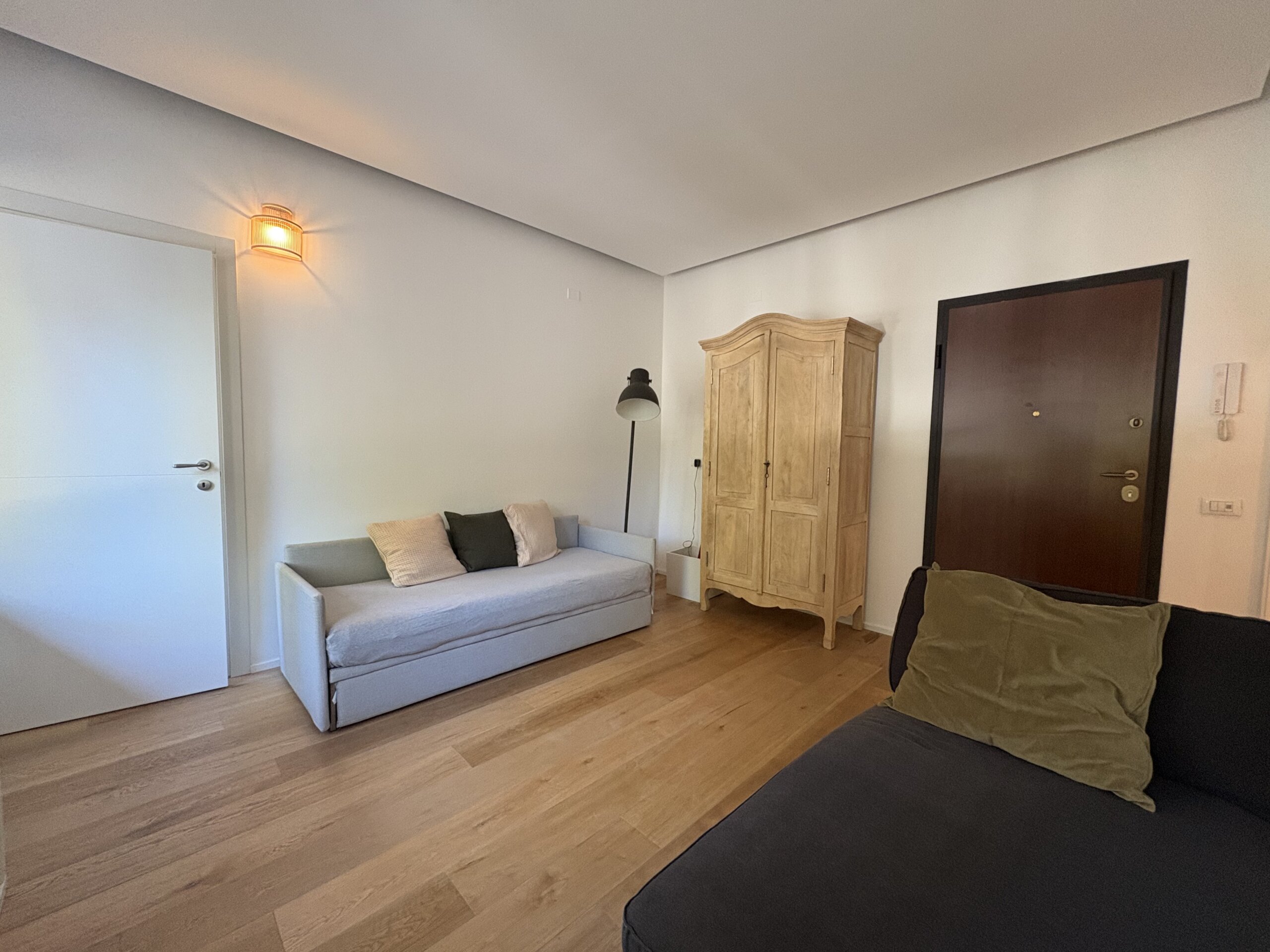 Bright and spacious newly renovated two-room flat located in the Porta Romana area. With a commercial area of 60 m², the flat on the mezzanine floor offers a welcoming environment. The flat consists of a double bedroom, a living room that can be converted into a second bedroom with a double sofa bed, a large open-plan kitchen area with a large dining table, ideal for dinners with friends and smart working, and two bathrooms with showers.