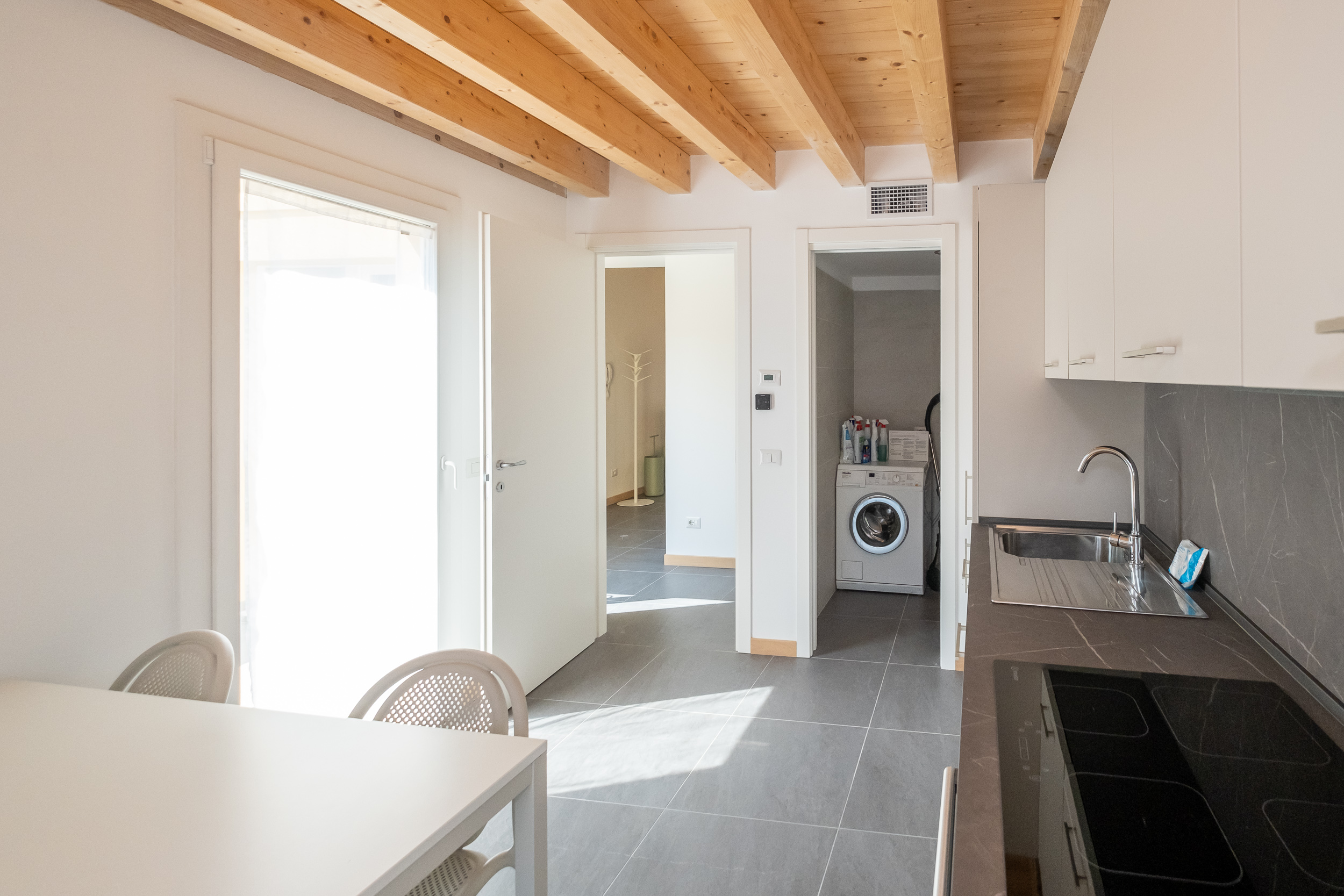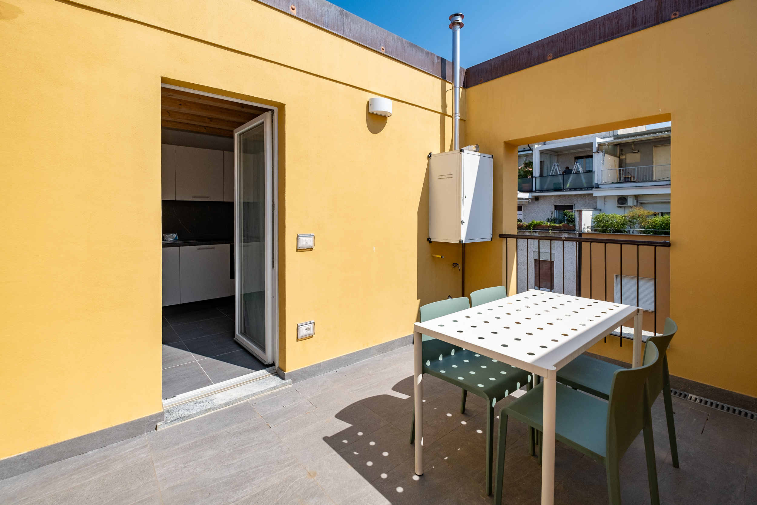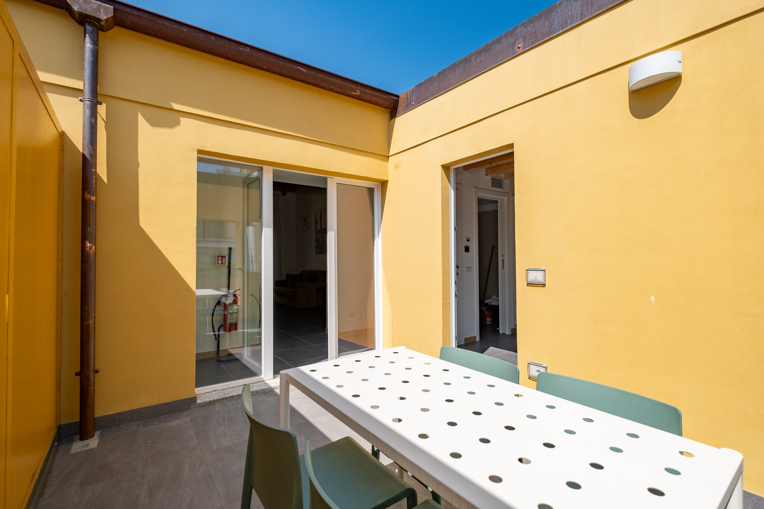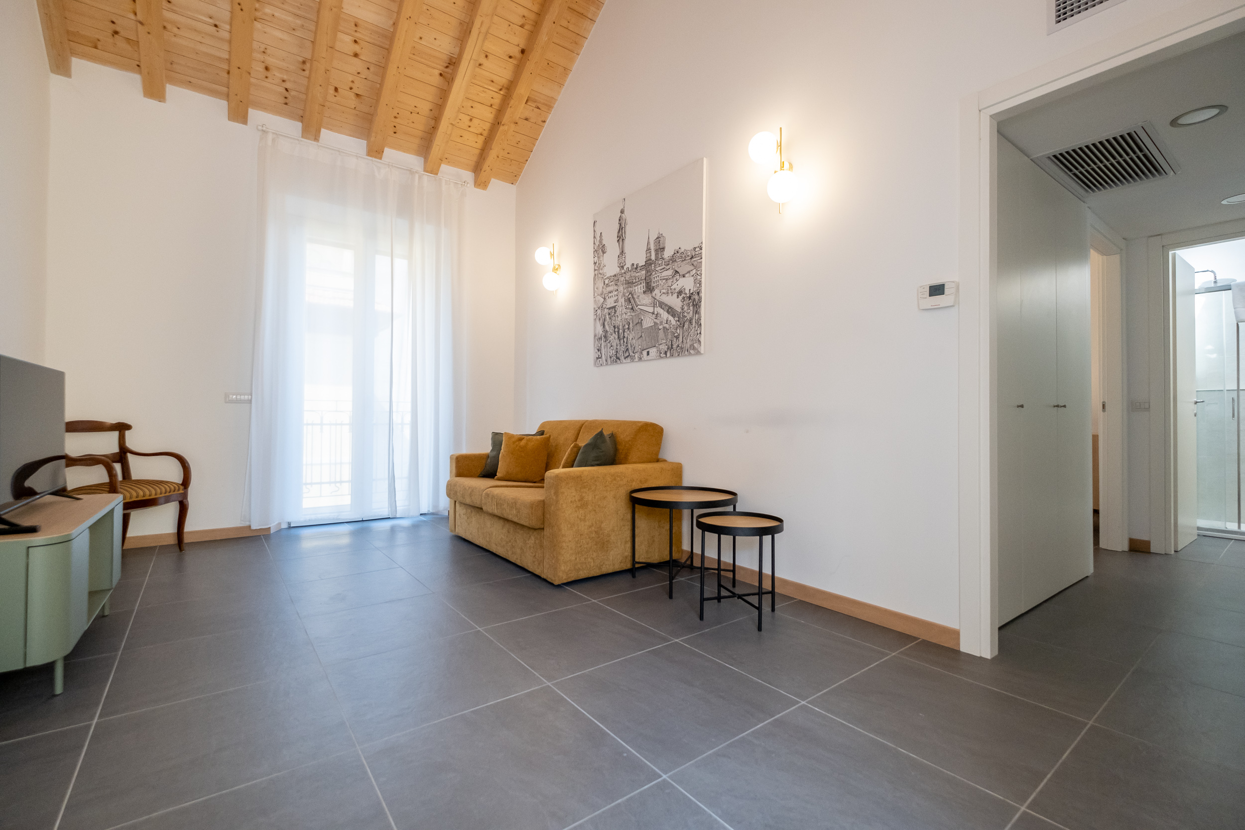 L’appartamento è composto da un ampio soggiorno con TV, una bella cucina con tavolo da pranzo e accesso a una splendida terrazza.