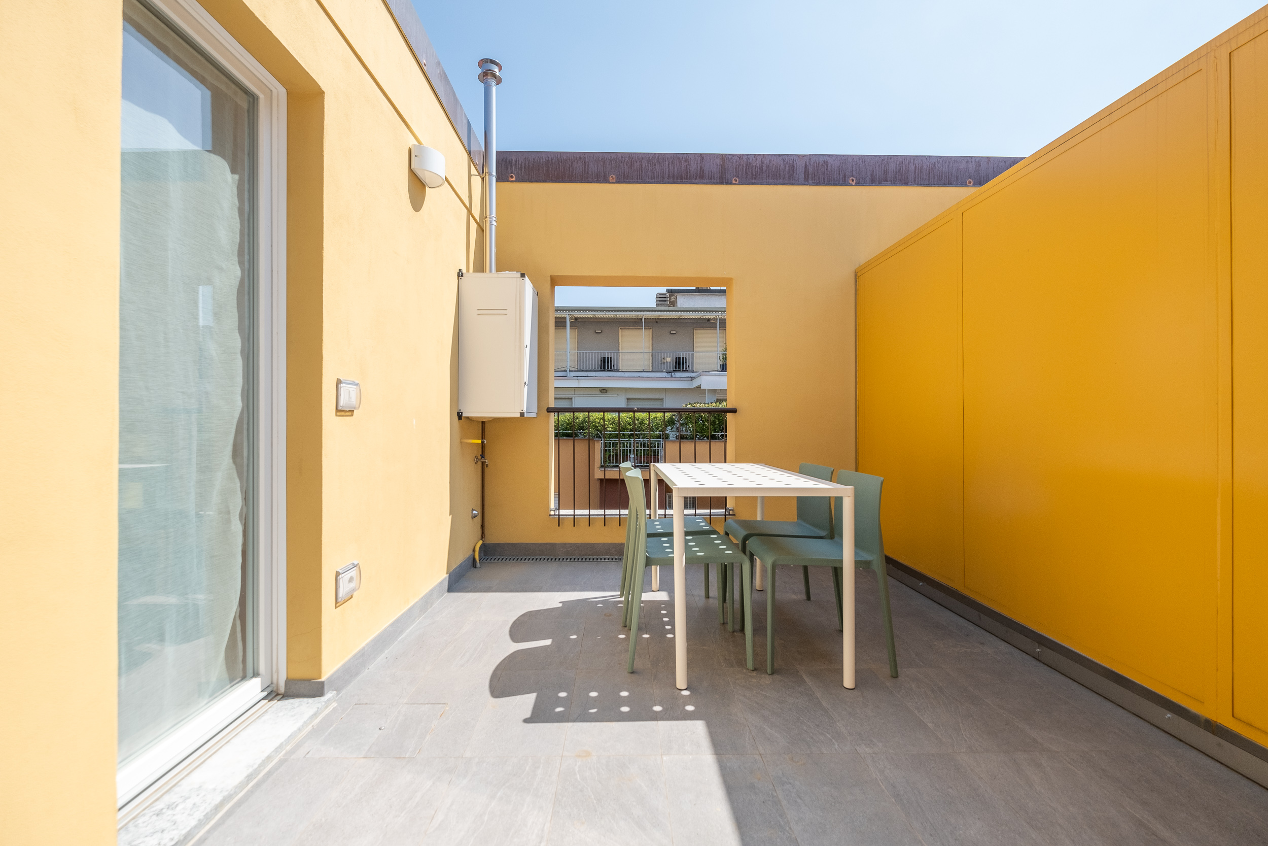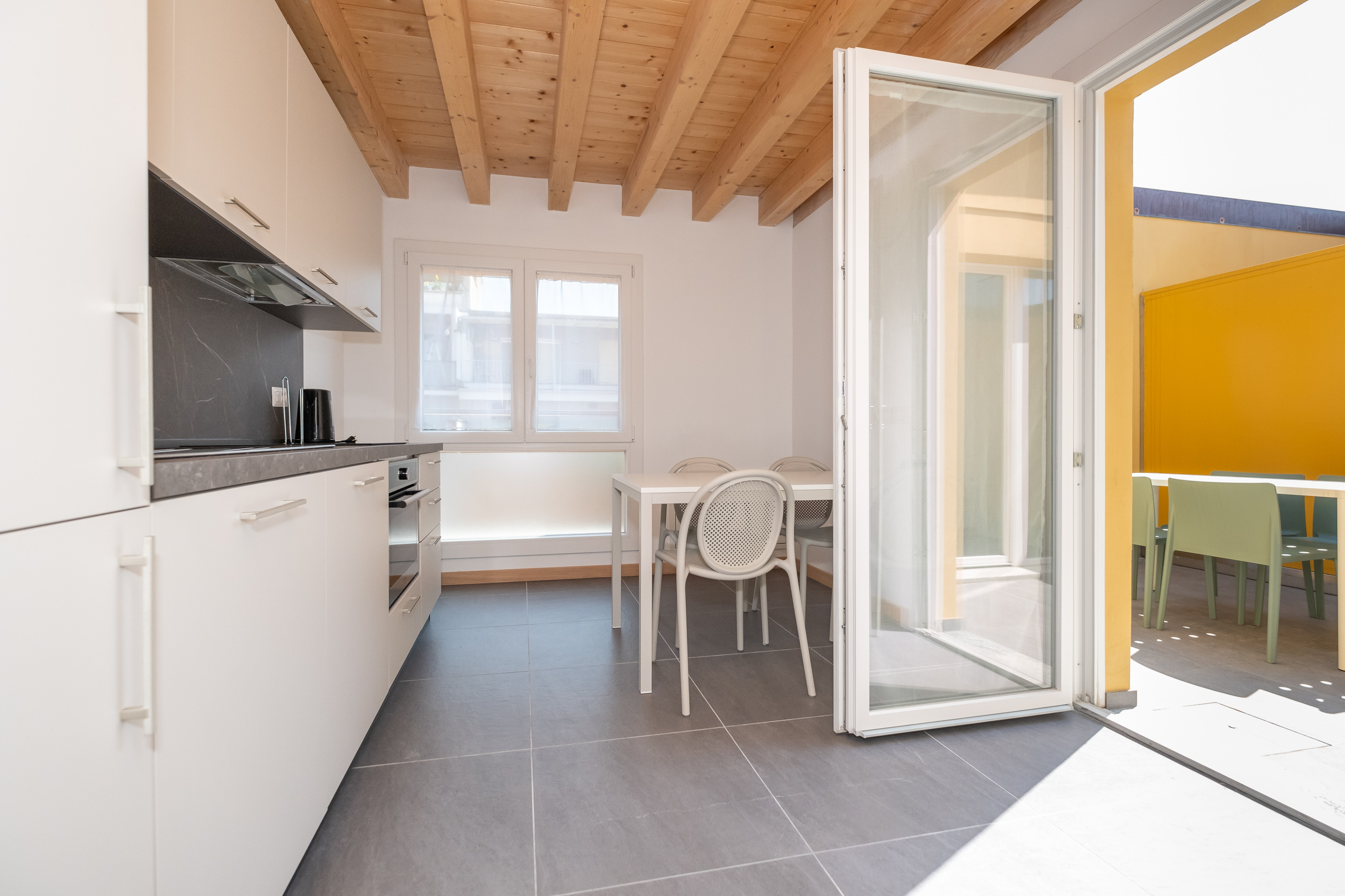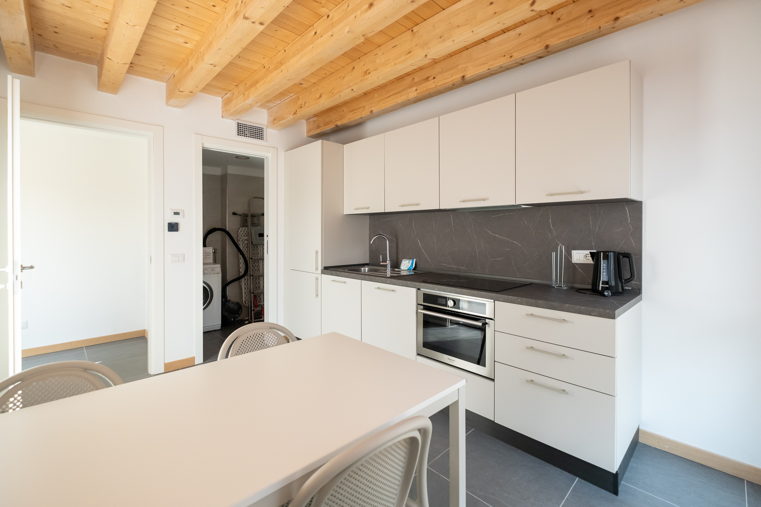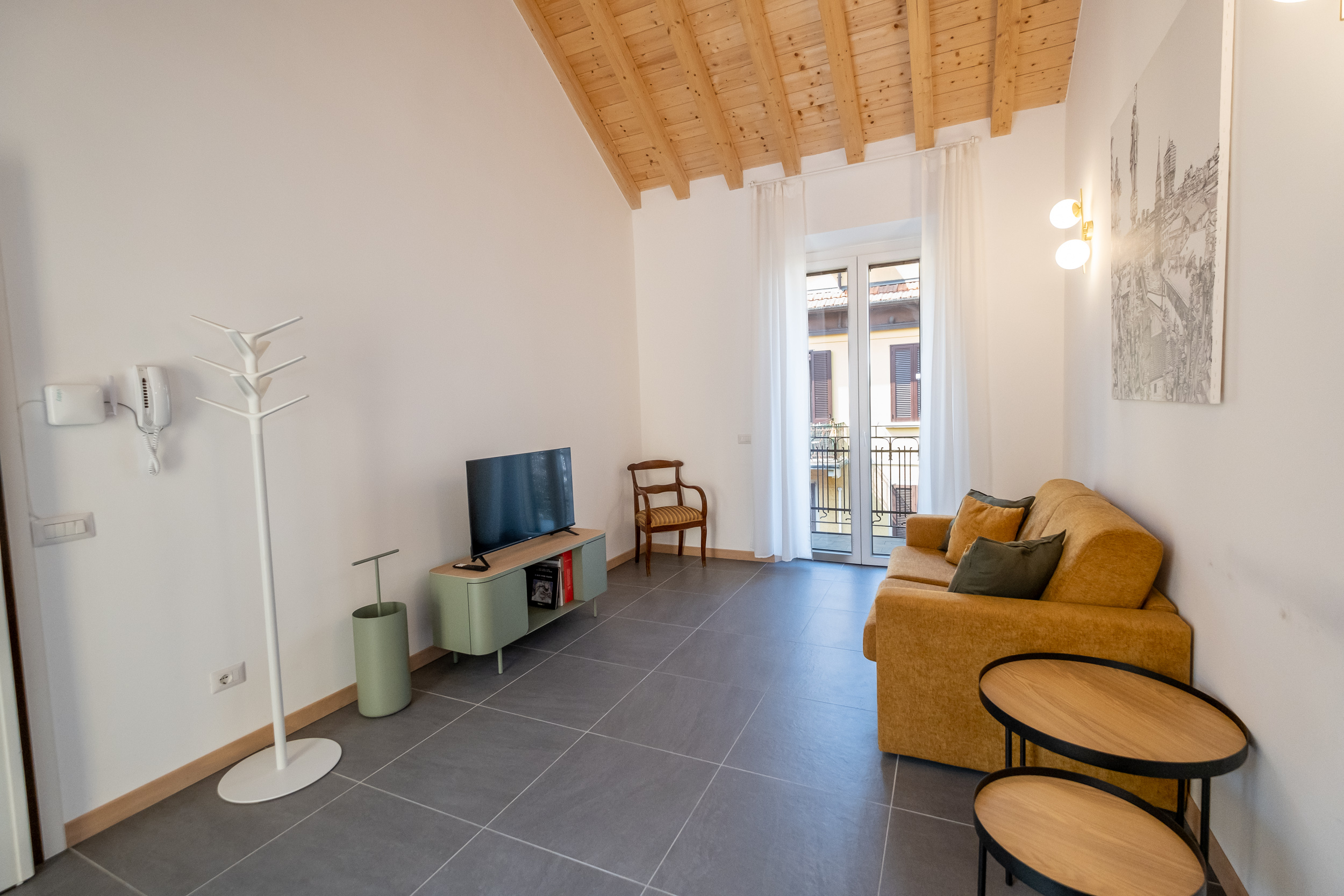 L’appartamento è composto da un ampio soggiorno con TV, una bella cucina con tavolo da pranzo e accesso a una splendida terrazza.
